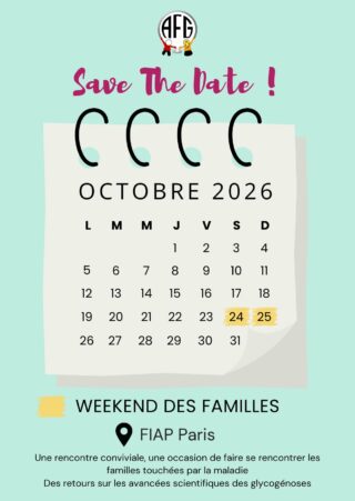 Cette année, celui-ci aura lieu au FIAP Paris les 24 et 25 octobre. Le programme du week-end n’est pas encore finalisé mais nous pouvons d’ores et déjà vous dire qu’auront lieu : des rencontres avec des professionnels de santé spécialisés dans les glycogénoses, des moments de partage entre familles touchées par la maladie, l’assemblée générale de l’association…